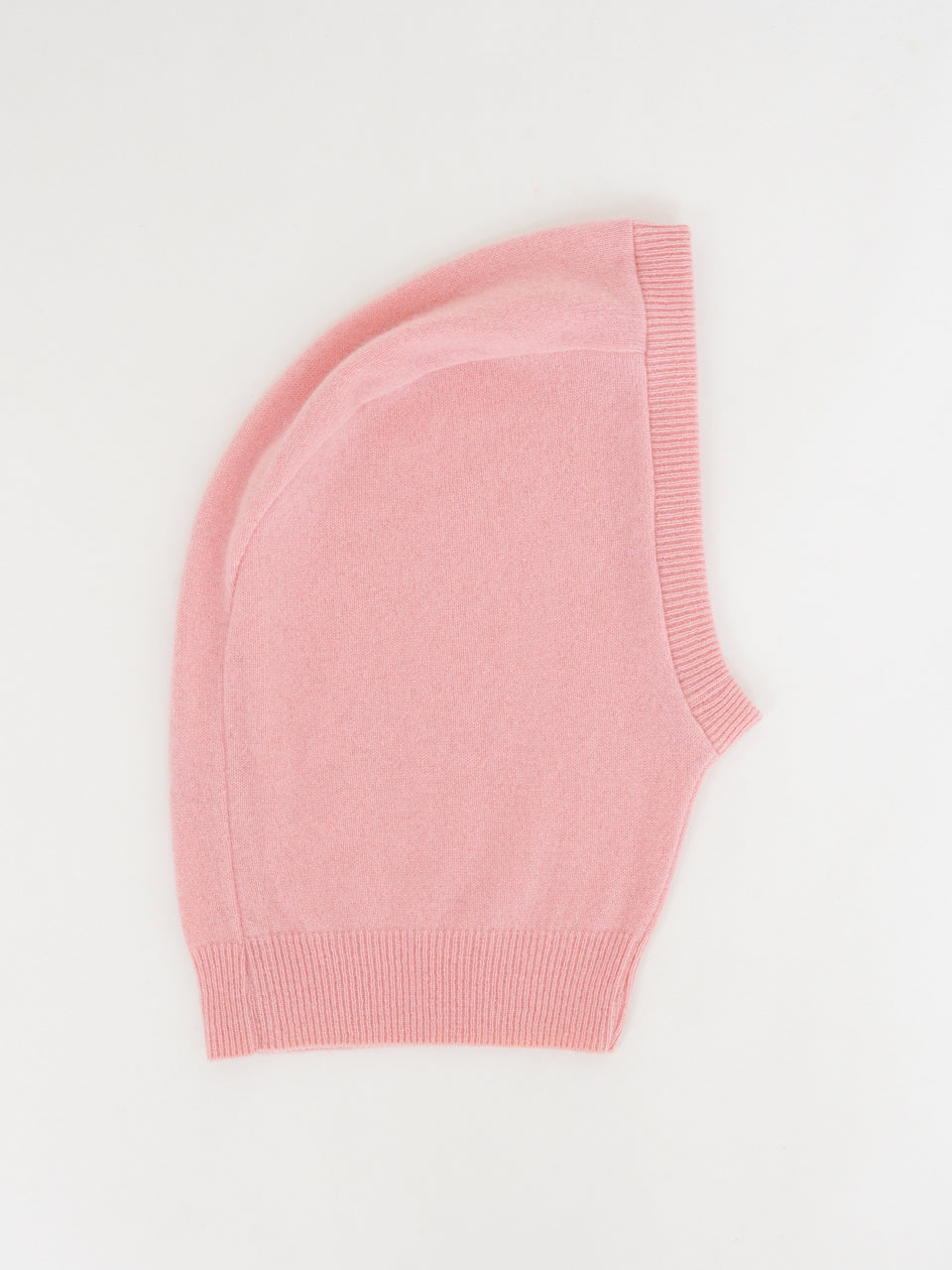 Comfortable and warm balaclava hood made of pink cashmere. The hood softly hugs the head and neck.