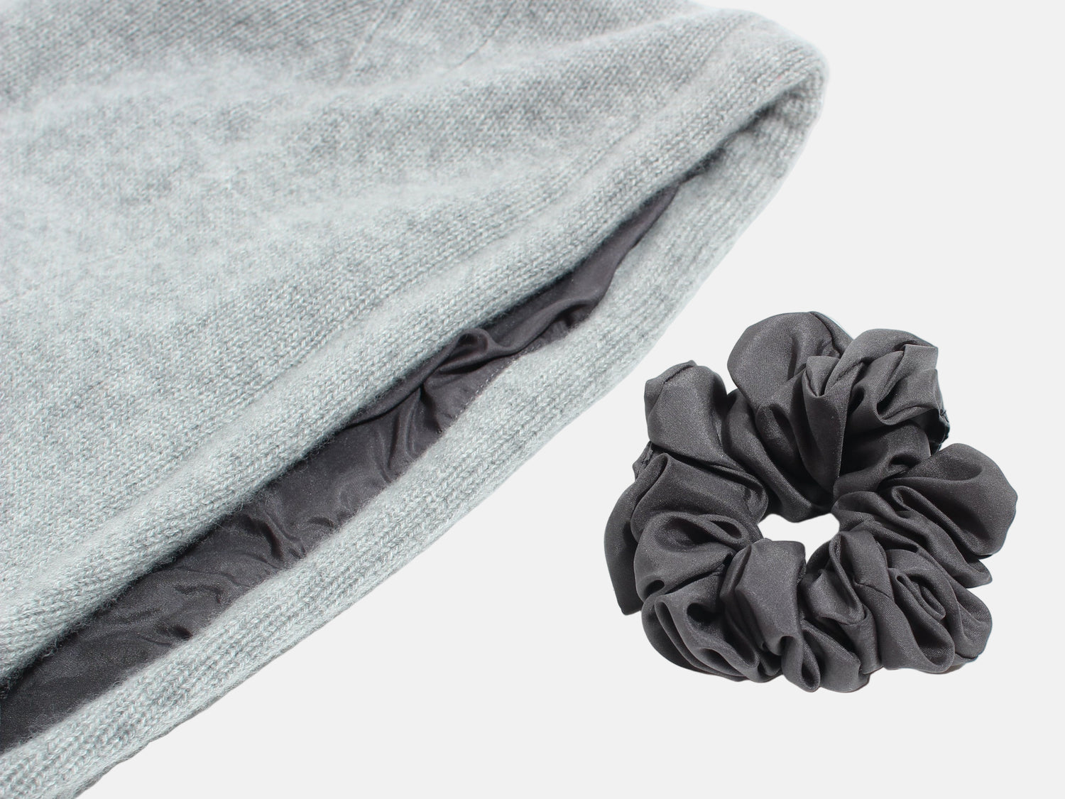 Wygodny i ciepły kapturek, balaclava wykonany z kaszmiru z jedwabną podszewką w kolorze szarości. Kapturek miękko otula głowę i szyję.