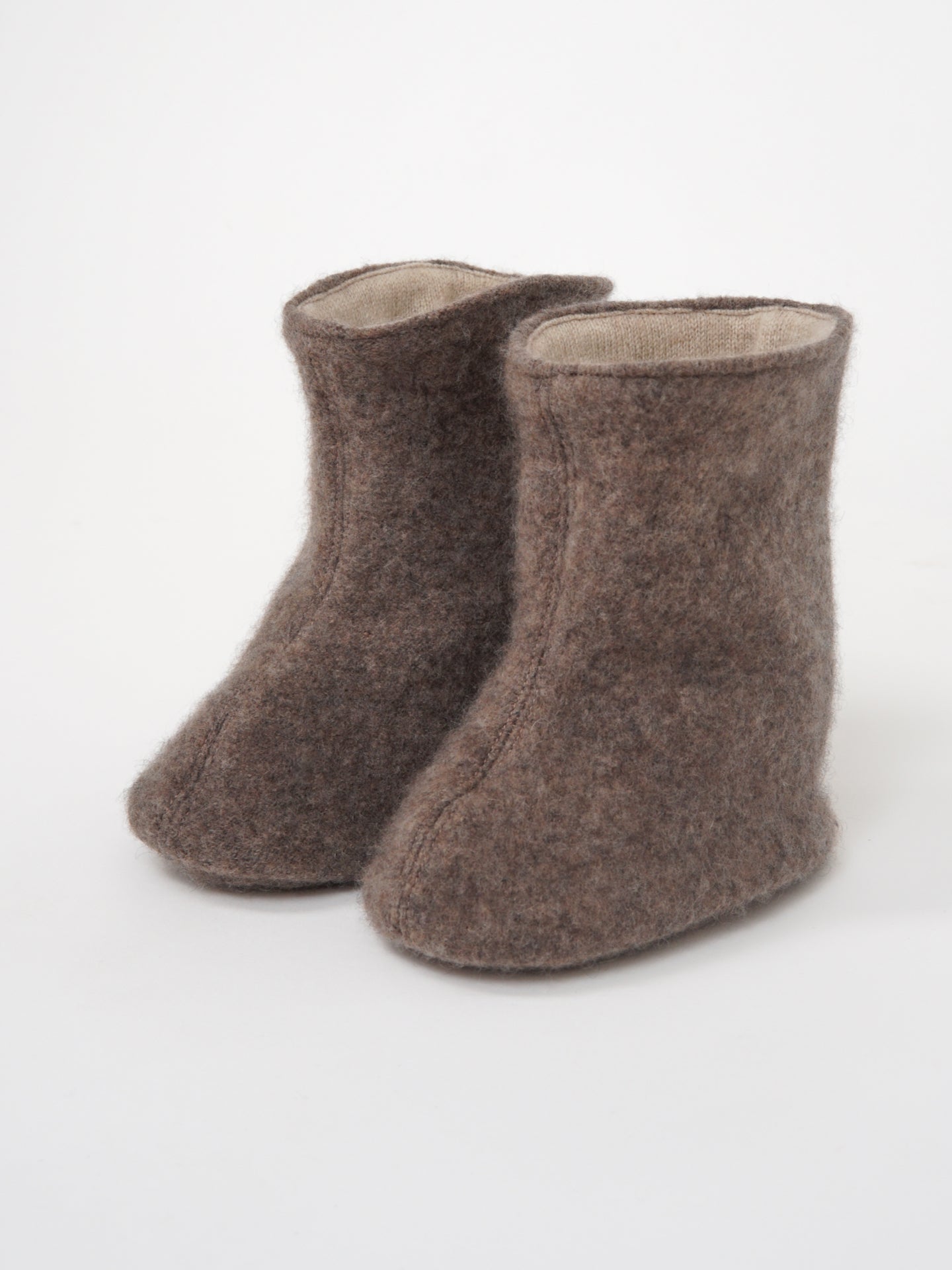 Chaussons confortables, chauds et épais composés d'une double épaisseur de cachemire. Les draps épousent doucement les pieds de l'enfant.