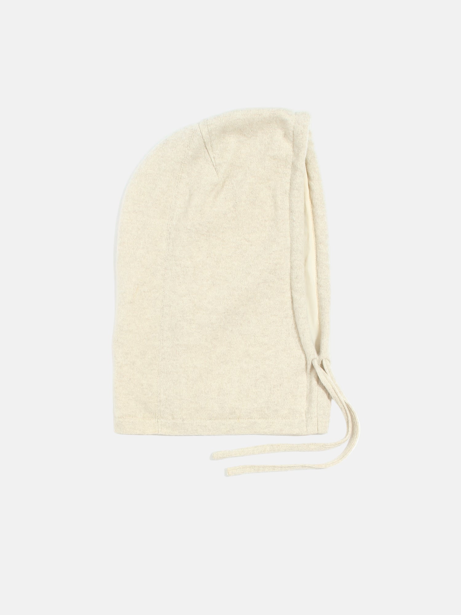 Wygodny i ciepły kapturek, balaclava wykonany z kaszmiru z jedwabną podszewką w kolorze jasnego beżu. Kapturek miękko otula głowę i szyję.